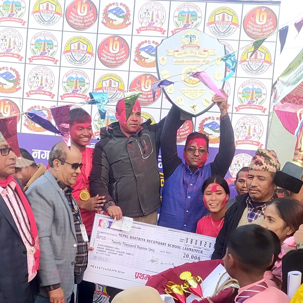 नेपाल राष्ट्रिय माध्यामिक विद्यालय लक्ष्मणपुुरले लगातार सातौँ पटक नगरस्तरीय रनिङ्गशिल्ड खेलकुद प्रतियोगिताको उपाधि जितेको छ । सोमबार सम्पन्न बाँसगढी नगरस्तरीय ७ औँ राष्ट्रपति रनिङ्गशिल्ड खेलकुद प्रतियोगितामा प्रथम स्थान हासिल गर्दै नेरा मावि लक्ष्ममणपुुरले लगातार सातौ पटक उपाधि जत्न सफल भएको हो । जित सँगै खेलकुुद विद्या तर्फ नेरा मावि लक्ष्ममणपुर बाँसगढी नगरपालिकाकै उत्कृष्ट विद्यालयको रुपमा परिचित बनेको छ । लक्ष्मणपुुरले प्रथम मेयर कप देखी सातौँ राष्ट्रपति रनिङ्गशिल्ड खेलकुद प्रतियोगिता सम्म उत्कृष्ट खेल प्रर्दशन गर्दै प्रथम हुन सफल भएको छ ।